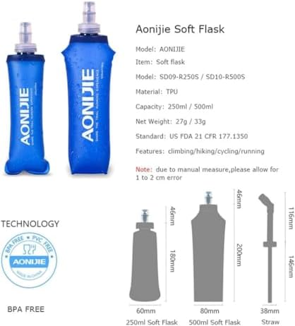 Stay hydrated on your adventures with the AONIJIE 2 Pack Soft Water Bottle. Designed for active individuals, these TPU collapsible flasks are perfect for running, hiking, cycling, and climbing. Each bottle holds 500ml of liquid and is made from BPA-free materials, ensuring your hydration is safe and healthy. The foldable design allows for easy storage when not in use, making them a convenient addition to your hydration pack. Lightweight and durable, these bottles are built to withstand the rigors of outdoor activities while providing you with easy access to water whenever you need it. Whether you’re hitting the trails or cycling through the city, the AONIJIE Soft Water Bottles are your ideal hydration solution. Get ready to quench your thirst and elevate your outdoor experience with this essential gear!
