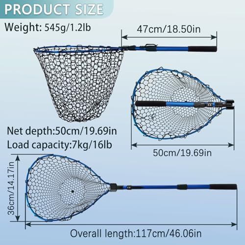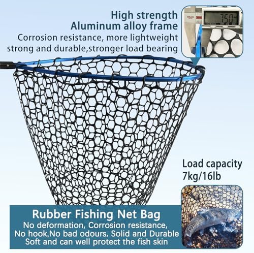 The lightweight yet sturdy handle provides excellent grip and control, making it easy to maneuver while reeling in your catch. The rubberized netting minimizes snagging and is designed to be fish-friendly, reducing harm to delicate scales and fins. Whether you’re a seasoned angler or just starting out, this large fish landing net is an essential addition to your fishing gear.