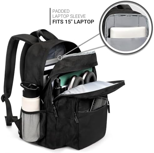 ZORFIN 26L Black Backpack for College, and Travel: Water Resistant Bookbag